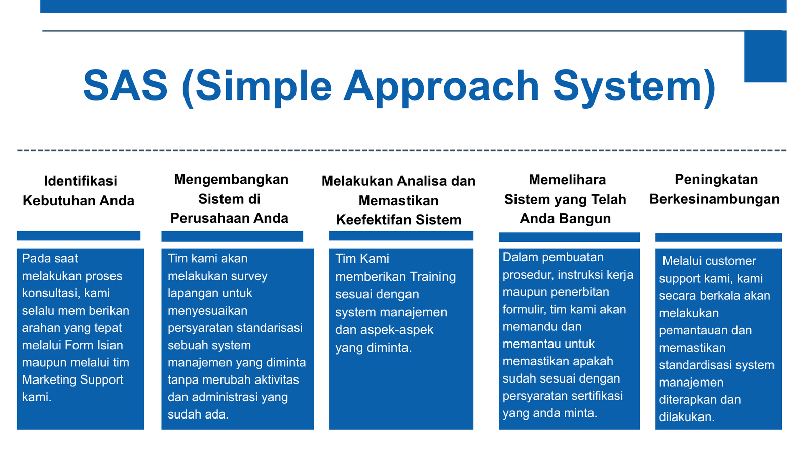 Kami menggunakan Metode Pendekatan Sederhana atau SAS (Simple Approach System) dalam membantu anda. Metode ini berfokus pada kebutuhan perusahaan sehingga sistem yang dibangun akan disesuaikan dengan kondisi perusahaan Anda.